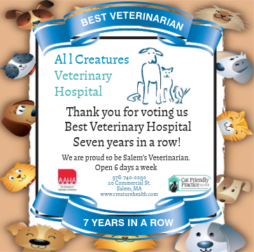 All Creatures Veterinary Hospital (ACVH) of Salem, MA is a veterinary center where people and their pets visit regularly to achieve a healthy, fulfilling life together. ACVH provides a caring and educational environment where people can learn about maximizing the health and well-being of their pets, and protect the health of their entire family. Our experienced veterinarians are able to help you care for your pet, no matter how common or exotic. We are proud to be Salem's premier veterinarians!